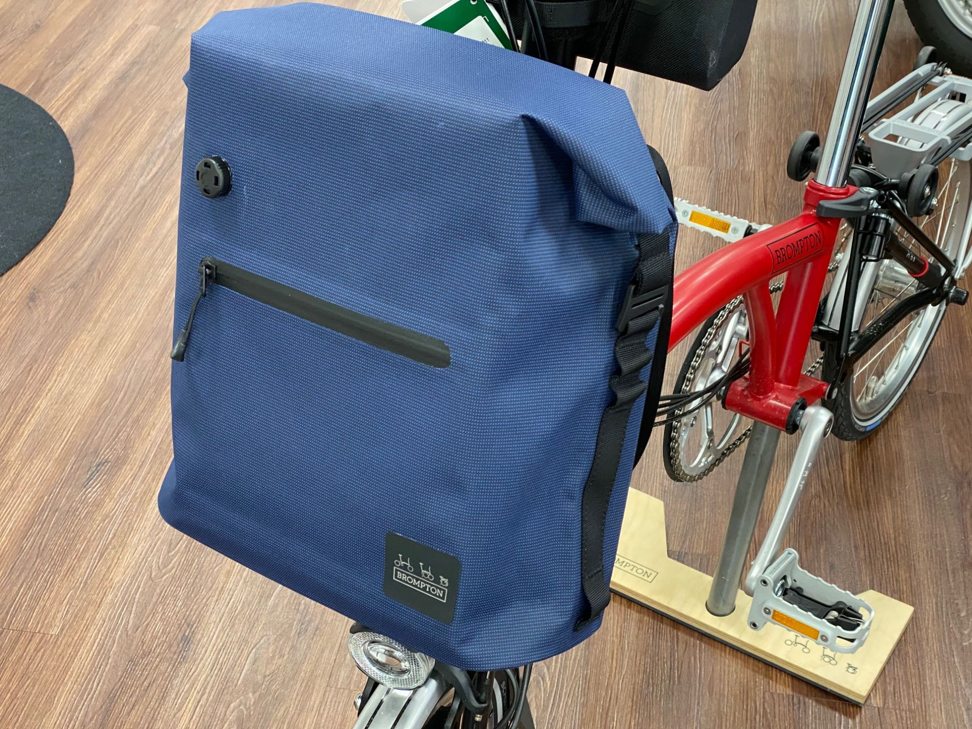 Die aluminumbeschichtete, sehr stylishe Tasche ist flexibel handhabbar und kann über die Schulter oder als Rucksack getragen werden. Der Reißverschluss an der Vorderseite ermöglicht den schnellen Zugriff auf den Tascheninhalt. Die Tasche verfügt über einen gummierten Haltegriff und ist kompatibel mit allen Brompton-Lenkern.