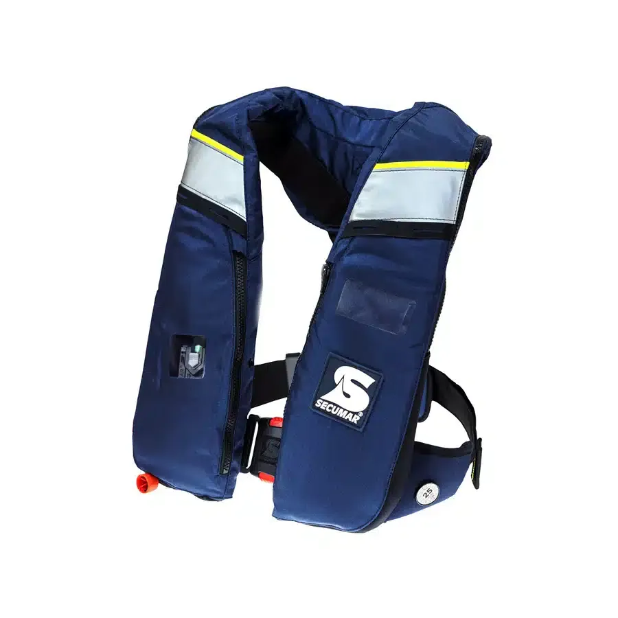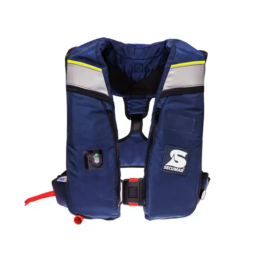 Das An- und Ablegen ist durch den patentierten SECUMAR Click-Beschlag besonders einfach. Die Weste wie eine Jacke umlegen und den Verschluss wie beim Autogurt schließen. Auch mit Handschuhen ist dieser Beschlag einfach zu bedienen. - Zu Grunde liegende Normen: