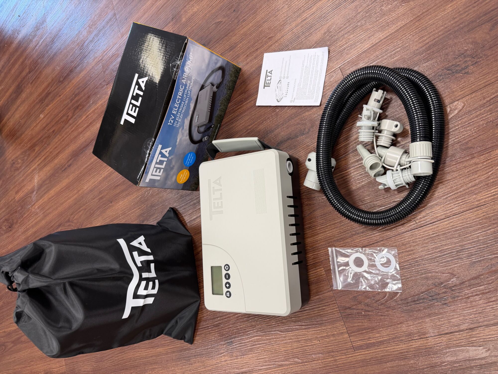 Telta 12V Elektro Luftpumpe Digital 1Bar mit Schlauchboot Adapter